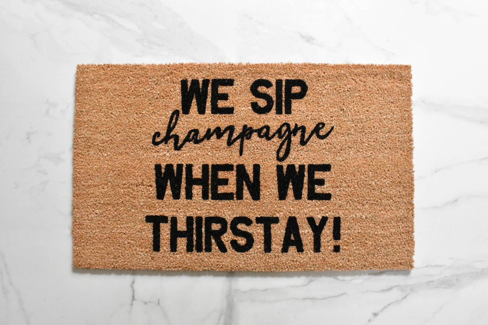 NOW WE SIP CHAMPAGNE WHEN WE THIRSTAY DOORMAT